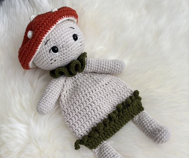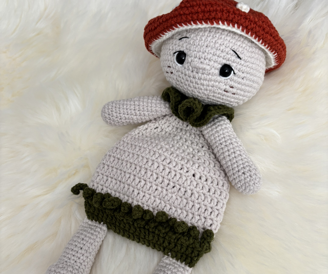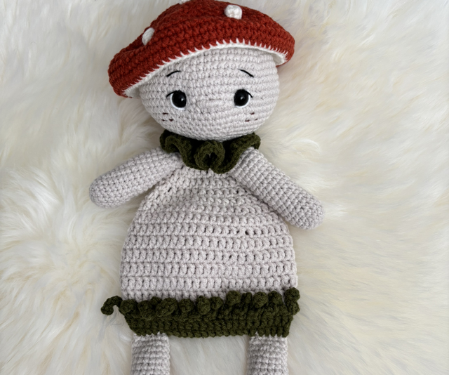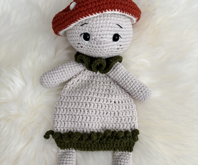 Doudou Champignon fait main avec beaucoup de soin.