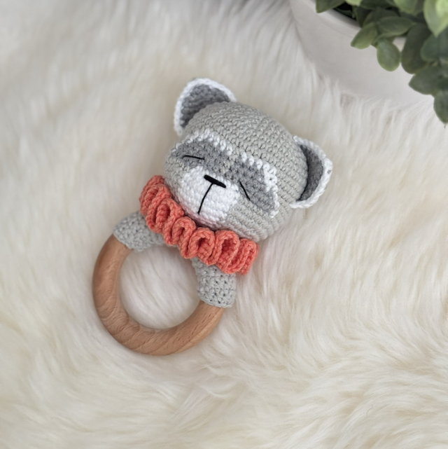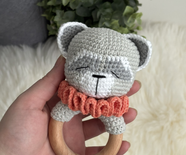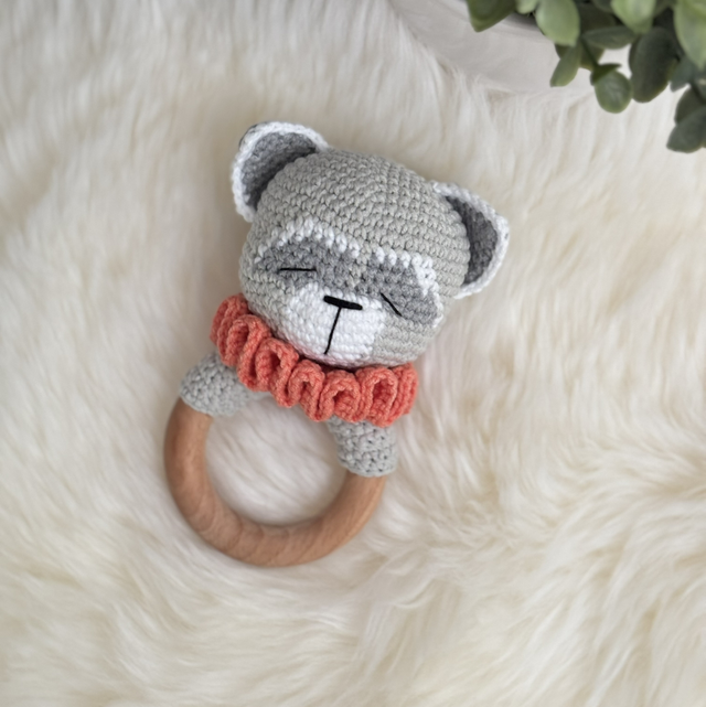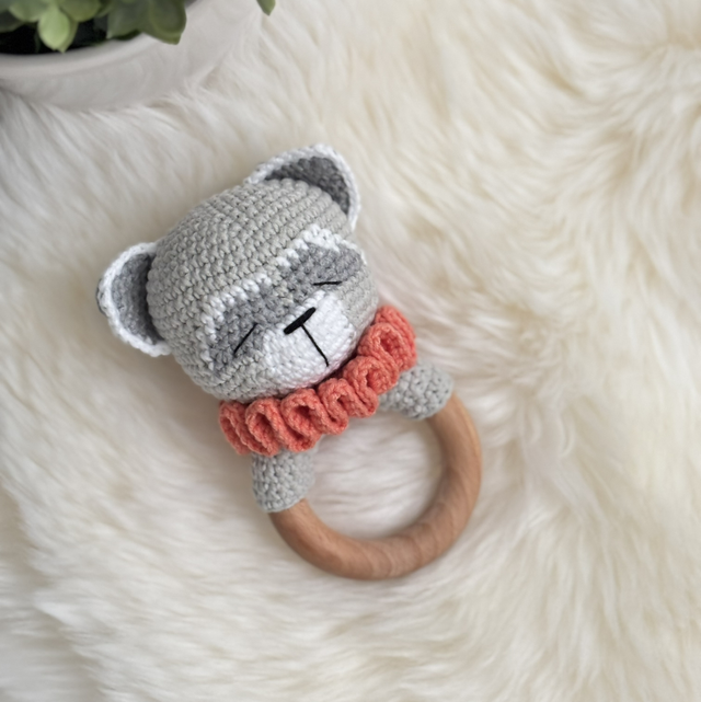 Hochet Raton laveur fait main avec beaucoup de soins.